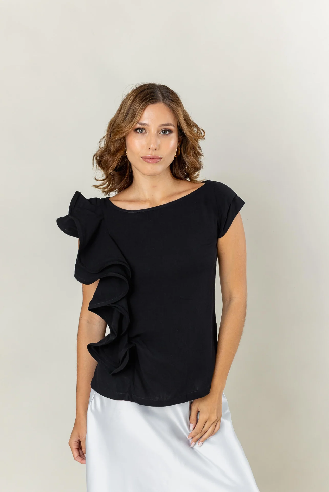 Blusa en seda pura color azul marino de confección italiana. El tejido sedoso premium ofrece una caída fluida y textura lujosa inigualable. El elegante azul navy aporta sofisticación atemporal y versatilidad, perfecto para looks formales o casual-chic.