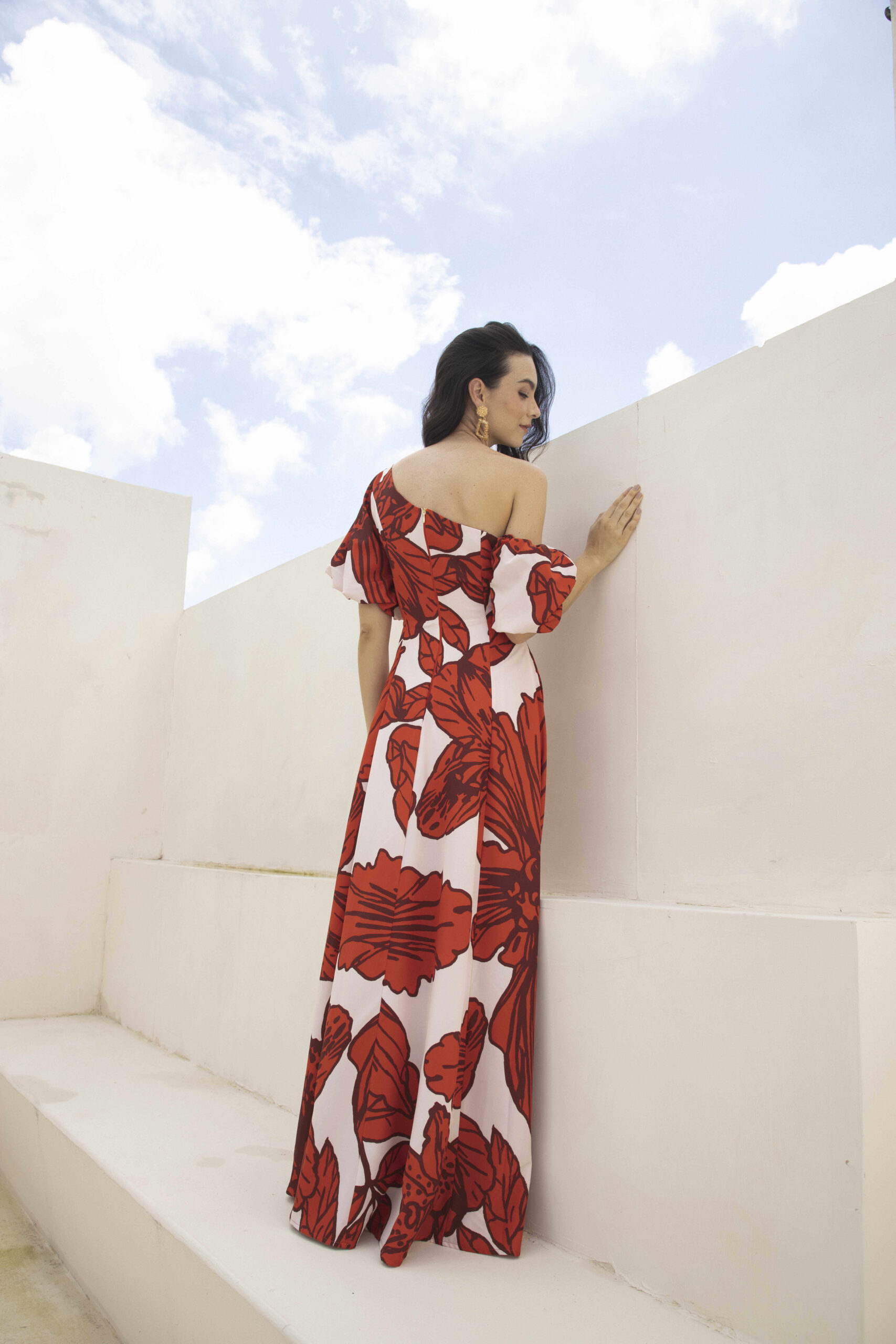 Dalia despierta en rojo estampado con energía floral indomable. Naranjarosa captura la vitalidad botánica en diseño que equilibra patrón y forma sin competir consigo mismo. El estampado añade profundidad visual mientras el rojo base mantiene cohesión audaz. Este vestido comprende que la naturaleza ya dominó el arte de llamar la atención, solo hay que traducirlo bien. Para días donde tu personalidad pide colores que la igualen en intensidad.