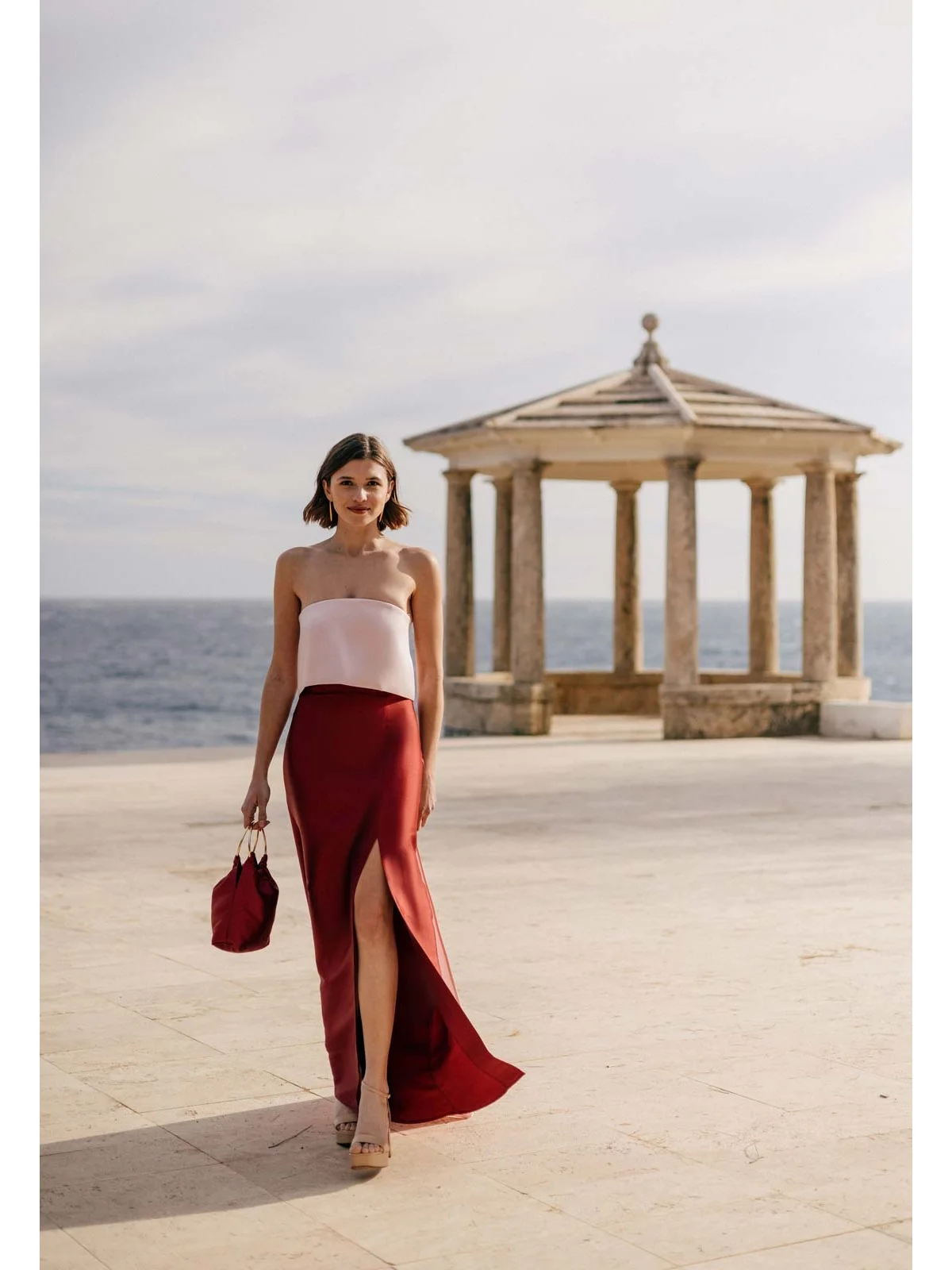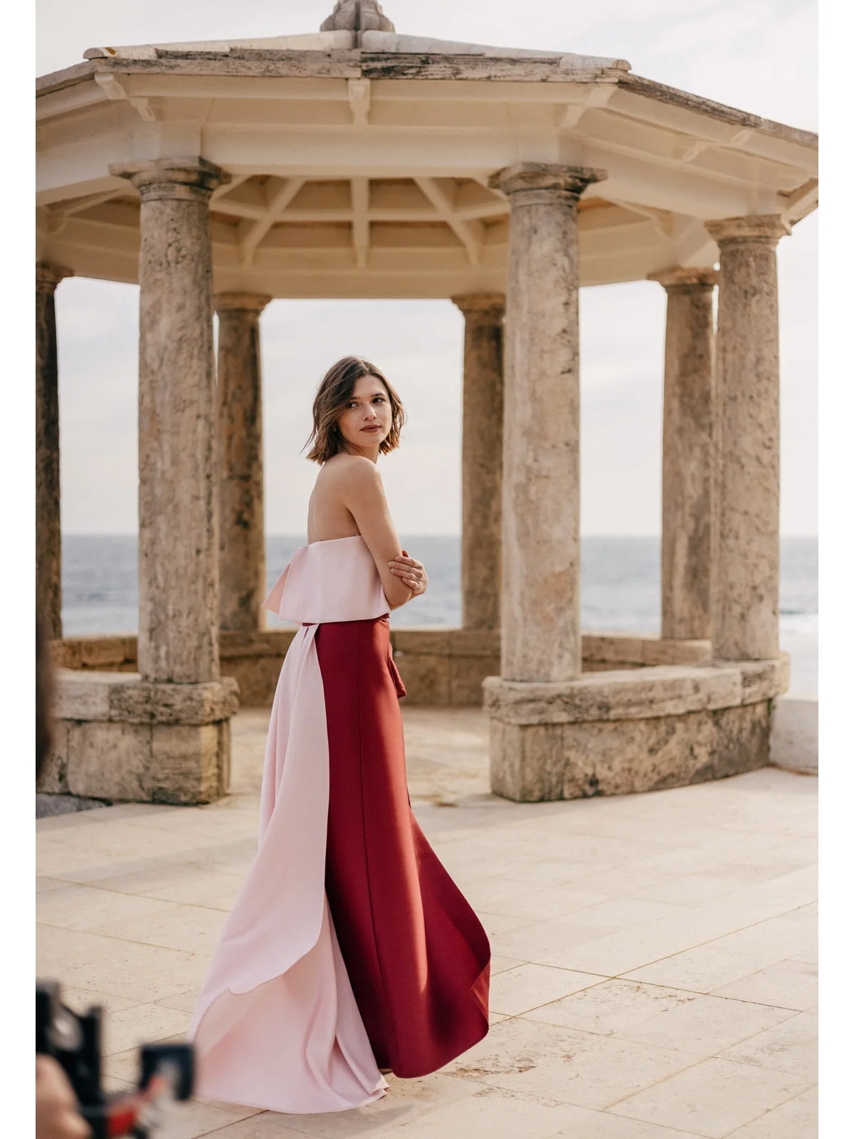 Margherita florece en rojo con opulencia europea. Lacroixe captura ese espíritu de alta costura donde el color no teme declarar intenciones. El diseño equilibra drama cromático con líneas refinadas, creando presencia que domina sin arrogancia. Este vestido comprende el rojo como poder: seductor, memorable, imposible de ignorar. Para ocasiones donde la discreción simplemente no está en el vocabulario y tu elegancia debe hablar idiomas universales.