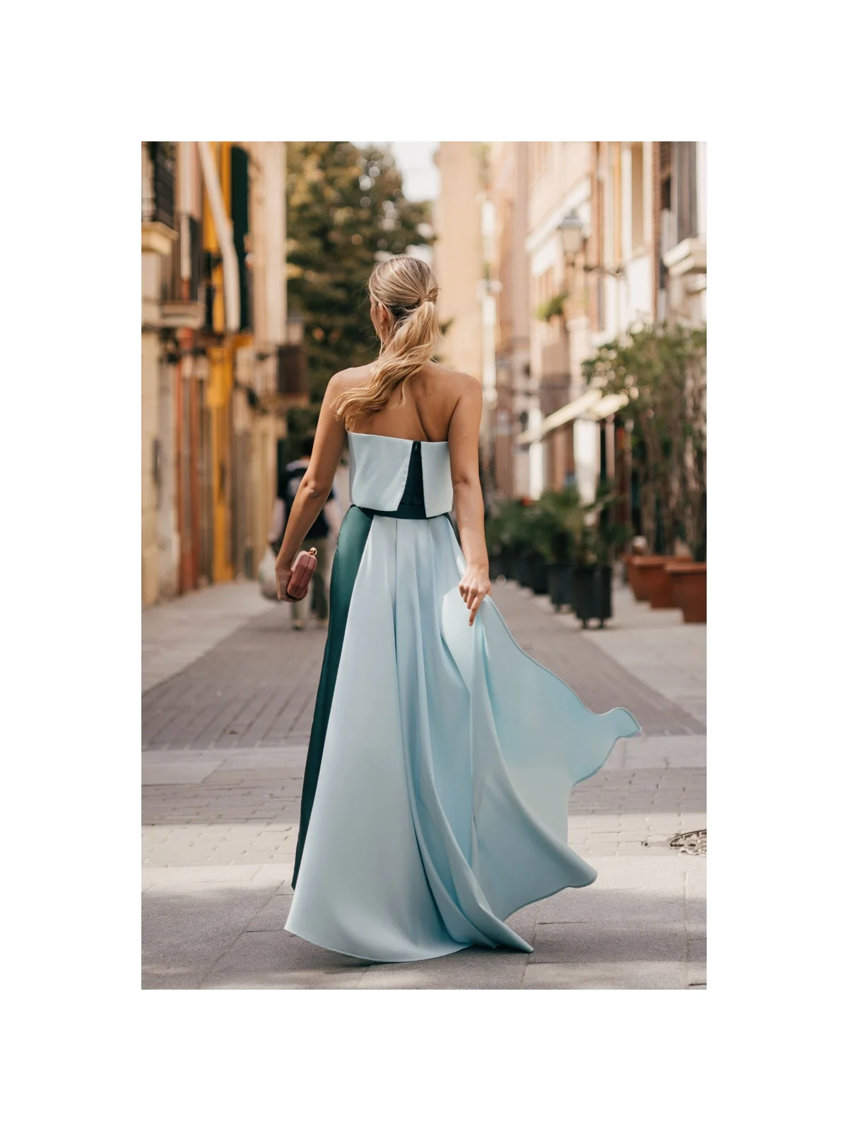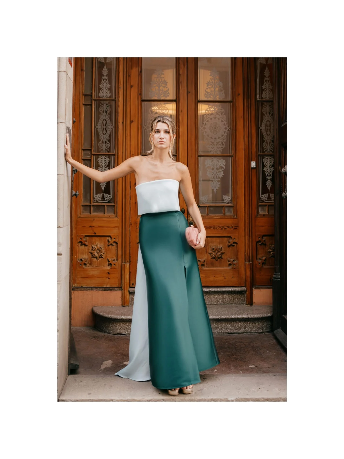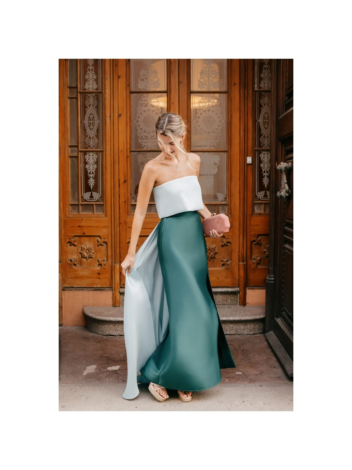 Margherita reinterpreta su opulencia en verde esmeralda con democracia de talla. Lacroixe demuestra maestría al crear una pieza única que abraza siluetas diversas sin comprometer elegancia. El verde profundo evoca bosques nocturnos y terciopelo antiguo, mientras el corte inteligente se adapta con gracia inesperada. Para la mujer que comprende que el lujo verdadero no discrimina cuerpos, los celebra. Sofisticación inclusiva en tonalidad envidiable.